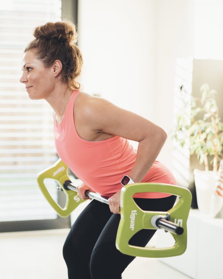 W treningach wykorzystuję ćwiczenia z ciężarem własnym ciała oraz profesjonalny sprzęt treningowy, taki jak Bosu, TRX czy sztangi fitness.
